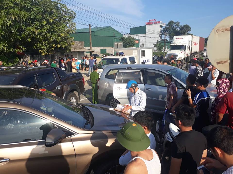 Tại hiện trường, hai ôtô tông ép sát vào nhau, có nhiều mảnh vỡ vương vãi khắp mặt đường. Công an thu giữ một khẩu súng cùng nhiều tang vật liên quan.