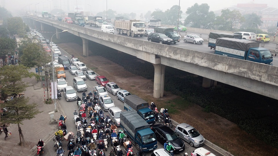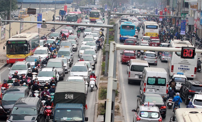 Sáng 10/2 (tức 25 Tết), cùng với học sinh, sinh viên, nhiều người dân nghỉ Tết sớm bắt đầu lên đường về quê khiến khiến các tuyến đường cửa ngõ ở thủ đô ùn tắc, kẹt cứng kéo dài hàng km.
