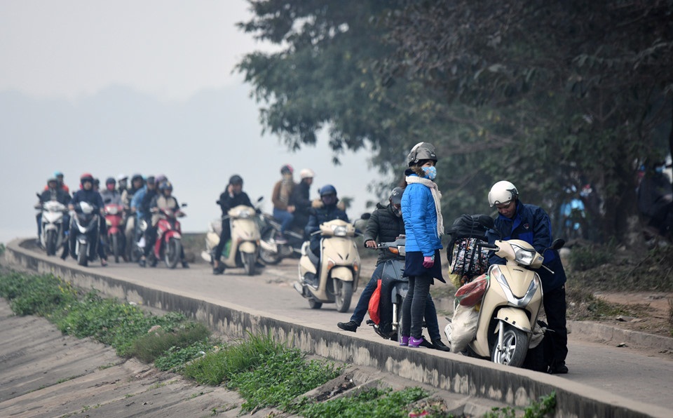 Trong số đó nhiều người chọn giải pháp đi xe máy để không phải chen lấn ngột ngạt khi ngồi trên ôtô khách cũng bất lực chịu cảnh “chôn chân”.