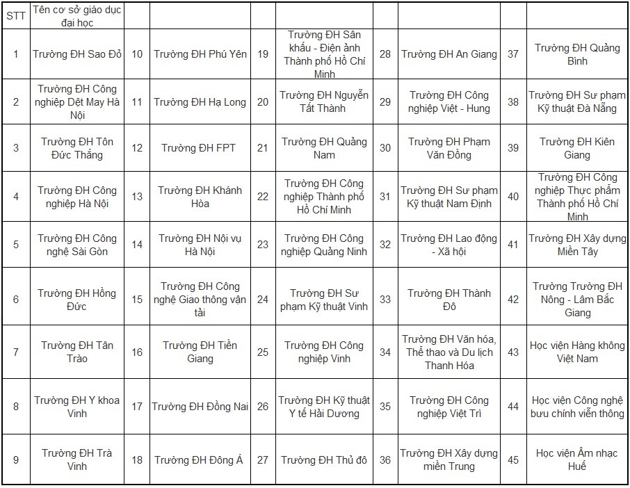 Theo báo Thanh niên, trước đó, ngày 25/7 Tổng cục Giáo dục nghề nghiệp có văn bản đề nghị dừng tuyển sinh mới trình độ cao đẳng, trung cấp kể từ ngày 1/7 đối với 45 cơ sở giáo dục đại học đã được Tổng cục Giáo dục nghề nghiệp cấp giấy chứng nhận đăng ký hoạt động giáo dục nghề nghiệp.