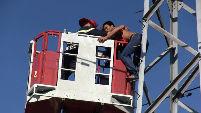 Theo đại diện lãnh đạo PCCC quận Bình Tân, thanh niên trên có biểu hiện "ngáo đá". Đề phòng người này nhảy xuống, Cảnh sát PCCC căng nệm hơi xung quanh trụ điện. Sau khi xe thang dương lên tiếp cận, đội cứu hộ chủ động đưa nước uống cho nam thanh niên. Sau gần 5 giờ thuyết phục, cảnh sát đã đưa được nam thanh niên nghi bị ngáo đá xuống đất an toàn.