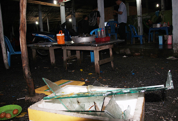 Chủ quán bỏ chạy, ông Lê Văn Cầm (SN 1953, cha chủ quán) đến can thiệp liền bị nhóm người này đánh gây thương tích ở đầu, tay phải đưa bệnh viện cấp cứu. Gây án xong, nhóm côn đồ lên xe chạy về hướng thị trấn Bến Lức, sau đó mạnh ai nấy đi về.