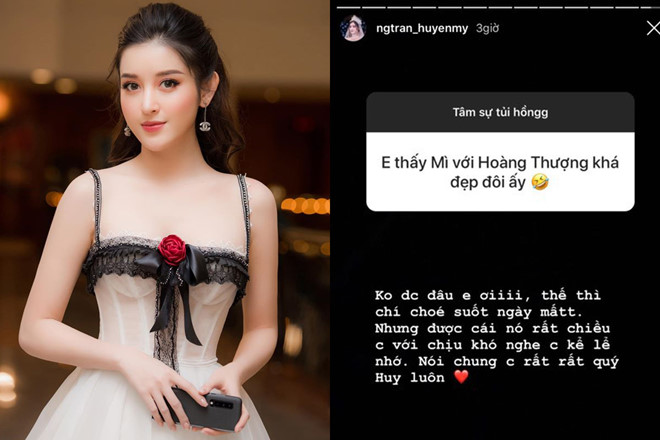 Cụ thể, khi được một fan ghép đôi với cầu thủ Đức Huy, Huyền My chia sẻ: “Không được đâu em ơi, thế thì chí chóe suốt ngày mất. Nhưng được cái nó rất chiều chị với chịu khó nghe chị kể lể. Nói chung chị rất quý Huy luôn". Đồng thời, khi được một người hâm mộ hỏi về việc có người yêu chưa, người đẹp tiết lộ: “Chị cũng đang không có nhu cầu yêu đương lắm. Độc thân vui mà, độc thân muôn năm". Đây được xem là lần đầu tiên cô lên tiếng phủ nhận chuyện tình cảm với cầu thủ Đức Huy sau khi vướng phải những nghi ngờ từ dư luận.