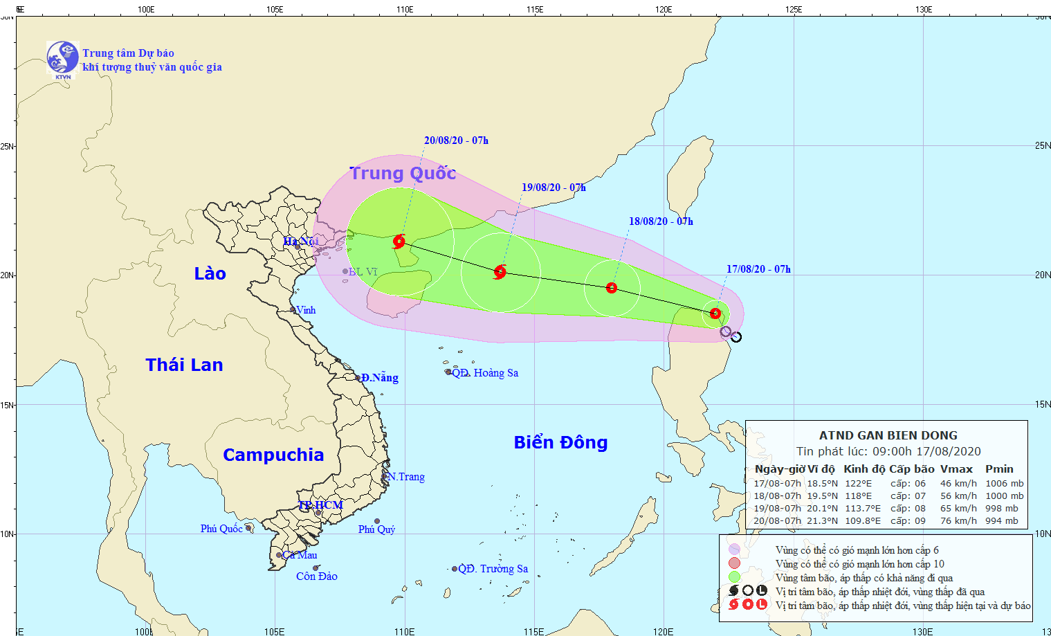 Dự báo trong 24 giờ tới, áp thấp nhiệt đới di chuyển theo hướng Tây Tây Bắc, mỗi giờ đi được 15-20km và đi vào khu vực Bắc Biển Đông. Đến 07 giờ ngày 18/8, vị trí tâm áp thấp nhiệt đới ở khoảng 19,5 độ Vĩ Bắc; 118,0 độ Kinh Đông, cách phía Bắc đảo Lu-dông (Phi-líp-pin) 300km về phía Tây Tây Bắc. Sức gió mạnh nhất vùng gần tâm áp thấp nhiệt đới mạnh cấp 7 (50-60km/giờ), giật cấp 9.