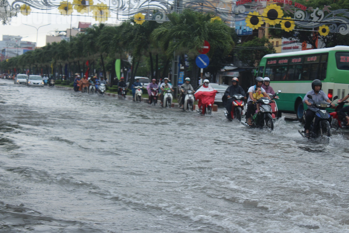 Đến 9 giờ sáng cùng ngày, tình trạng ngập nước vẫn xảy ra tại một số tuyến đường trong nội ô TP Bạc Liêu.
