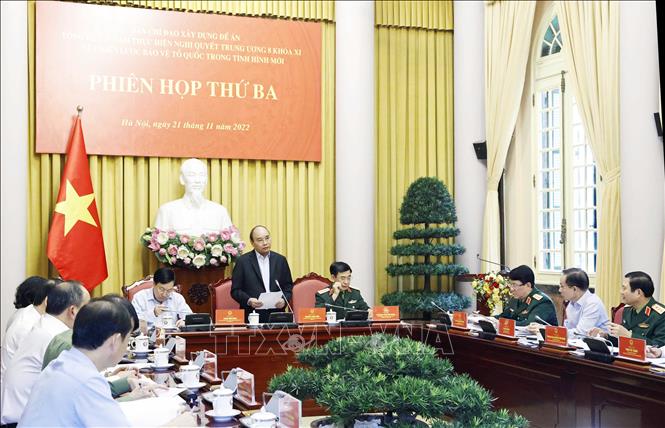 Sau khi các thành viên Ban Chỉ đạo phát biểu ý kiến, Trưởng Ban Chỉ đạo nhấn mạnh, bảo vệ Tổ quốc trong tình hình mới phải đảm bảo lợi ích quốc gia, dân tộc, giữ gìn hòa bình để phát triển đất nước. Chủ tịch nước đánh giá cao các thành viên Ban Chỉ đạo đã trách nhiệm trong triển khai các nhiệm vụ kế hoạch và đề nghị các thành viên, các cơ quan chức năng tiếp tục đóng góp xây dựng Đề cương chi tiết, dự thảo Nghị quyết với tinh thần trách nhiệm cao. Các nội dung phải có sự trao đổi, thảo luận để có sự thống nhất cao.