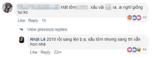 Nhật Lê đã đáp trả lại những lời lẽ "kém duyên" đó, Nhật Lê nói thẳng: "2019 rồi sang lên đi bạn, xấu tởm nhưng sang thì vẫn hơn nhé" rồi thẳng tay xoá bình luận vài tiếng sau đó.
