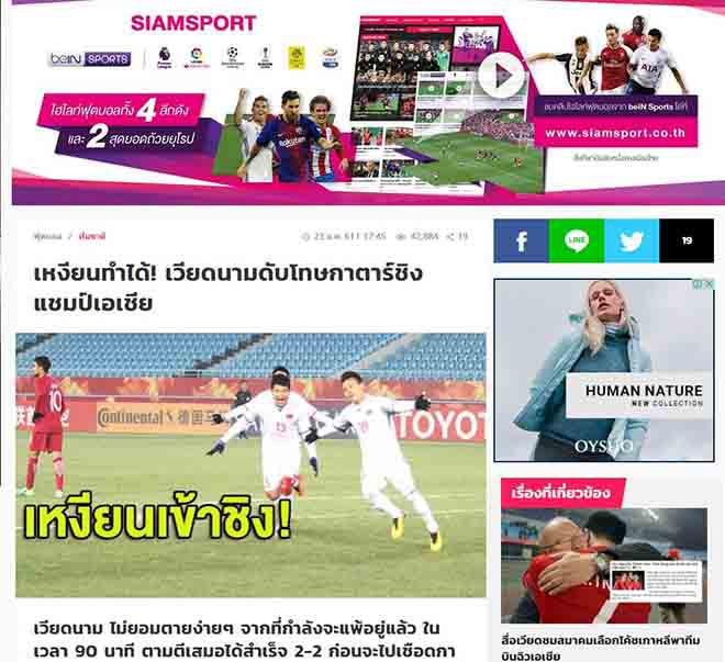 Chiến tích lịch sử của U23 Việt Nam là điều khiến U23 Thái Lan phải ghen tị, còn báo chí Thái Lan ngưỡng mộ. Tờ Siam Sport đánh giá rất cao màn trình diễn chói sáng của "siêu sao" Quang Hải, đưa U23 Việt Nam trở thành đội bóng đầu tiên thuộc ASEAN đi đến chung kết U23 châu Á.
