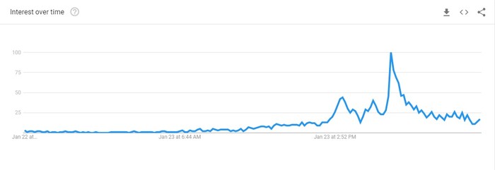Theo đồ thị cho thấy khi trận đấu giữa U23 Việt Nam và Qatar bắt đầu diễn ra thì mức độ tìm kiếm từ khóa “U23 Vietnam” trên toàn thế giới bắt đầu tăng nhẹ. Con số này cứ tăng dần đều cho đến khi trận đấu vừa kết thúc thì lượt tìm kiếm từ khóa “U23 Vietnam” tăng vọt bất ngờ thậm chí cao hơn gấp trăm lần so với buổi sáng.