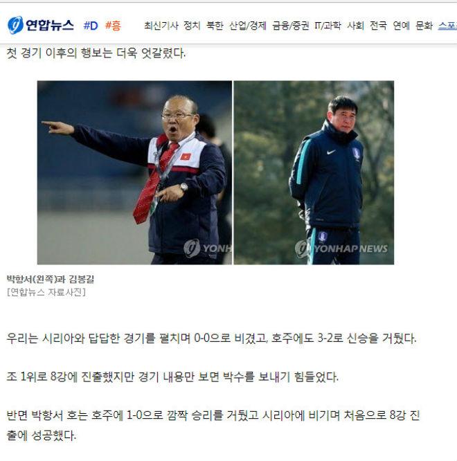 Yonhap News hoang mang với dòng tít: "Tại sao Park Hang Seo và U23 Việt Nam làm được còn Kim Bong Gil và U23 Hàn Quốc lại không?".