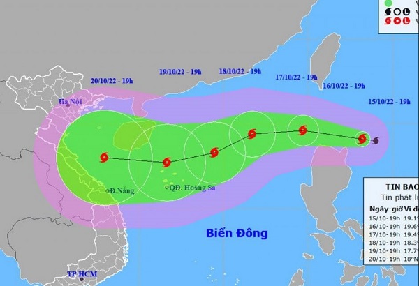 Đến 7h ngày 18/10, bão sẽ còn cách quần đảo Hoàng Sa của Việt Nam khoảng 330km về phía đông bắc và tiếp tục đi về phía tây tây nam. Mỗi giờ đi được 10 - 15km và có khả năng mạnh thêm. Lúc này, sức gió vùng gần tâm bão mạnh cấp 12, giật cấp 14.