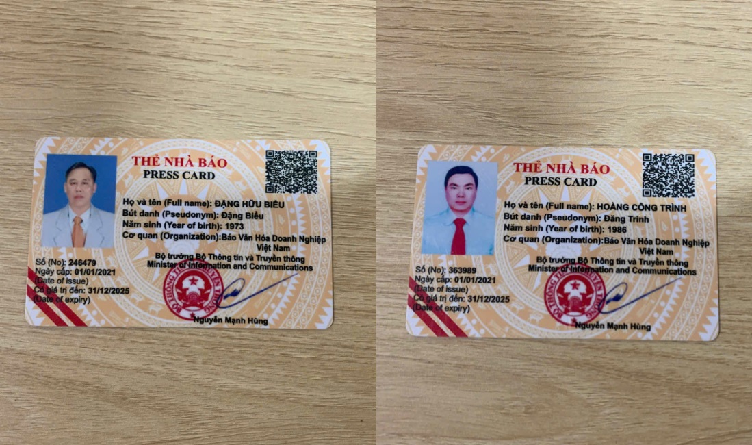 Qua xác minh, Hoàng Công Trình là phóng viên thử việc tại Tạp chí Doanh nghiệp và Kinh tế xanh (Tạp chí này đã ra quyết định chấm dứt hợp đồng từ ngày 24/10/2024 đối với Hoàng Công Trình), còn Đặng Hữu Biểu không phải là phóng viên báo chí.