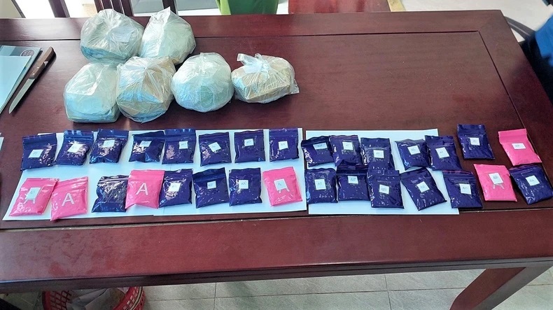 Tại hiện trường, lực lượng Công an phát hiện, thu giữ 6 bánh heroin (trọng lượng hơn 2kg), 6.000 viên ma túy tổng hợp và 1 con dao nhọn.