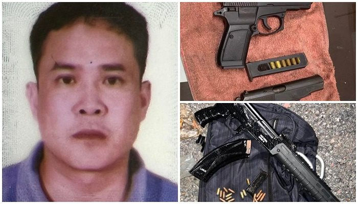 Tiến hành khám xét ô tô của Điệp, lực lượng chức năng cũng đã phát hiện, thu giữ thêm 01 khẩu súng kiểu dáng súng AK (trong súng có 01 băng đạn gồm 14 viên) và 17 viên đạn khác các loại.