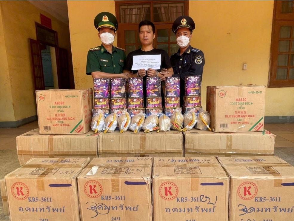Qua kiểm tra, lực lượng chức năng phát hiện Vũ Đức Dương đang vận chuyển trái phép 555kg pháo hoa nổ các loại. Bước đầu, Dương khai nhận vận chuyển số pháo trên từ Lào về Việt Nam để tiêu thụ.