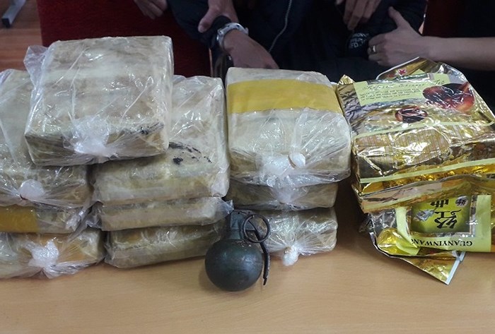 Khám xét tại chỗ, các trinh sát thu giữ 60.000 viên ma túy tổng hợp dạng hồng phiến; 2 kg ma túy đá, 1 quả lựu đạn đã rút chốt.