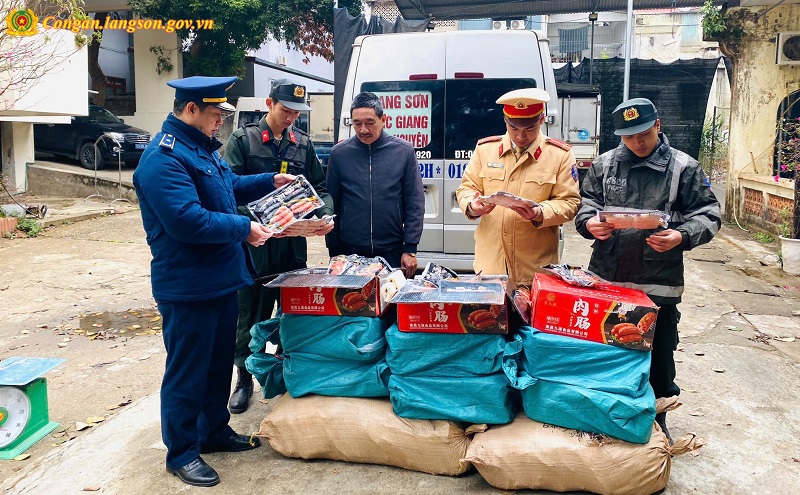 Theo Công an tình Lạng Sơn, sáng ngày 8/2, trong quá trình tuần tra, kiểm soát tại Km21+800 Quốc lộ 1, thuộc địa phận thôn Kéo Khoác, xã Yên Trạch, huyện Cao Lộc, lực lượng Cảnh sát giao thông Công an tỉnh đã phát hiện và bắt giữ vụ vận chuyển số lượng lớn xúc xích không rõ nguồn gốc xuất xứ.