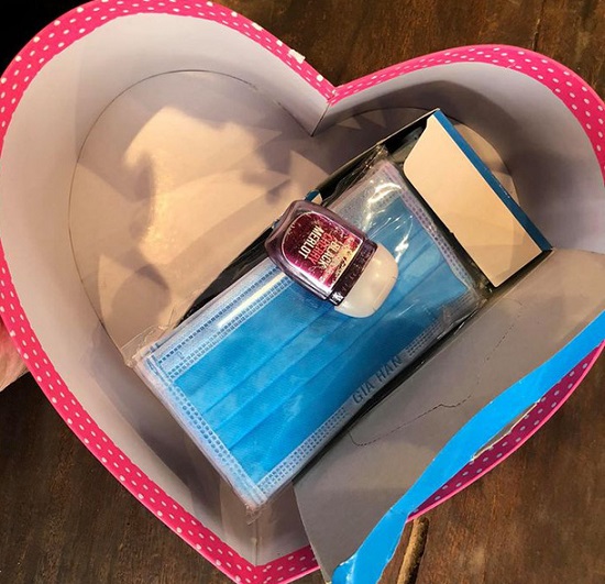 Món quà bất ngờ mà nam ca sĩ dành tặng cho bà xã Kim Cương dịp Valentine năm nay không gì khác mà chính là một hộp khẩu trang và một lọ dung dịch rửa tay màu tím nhỏ gọn, tiện lợi giữa mùa dịch viêm phổi Corona.