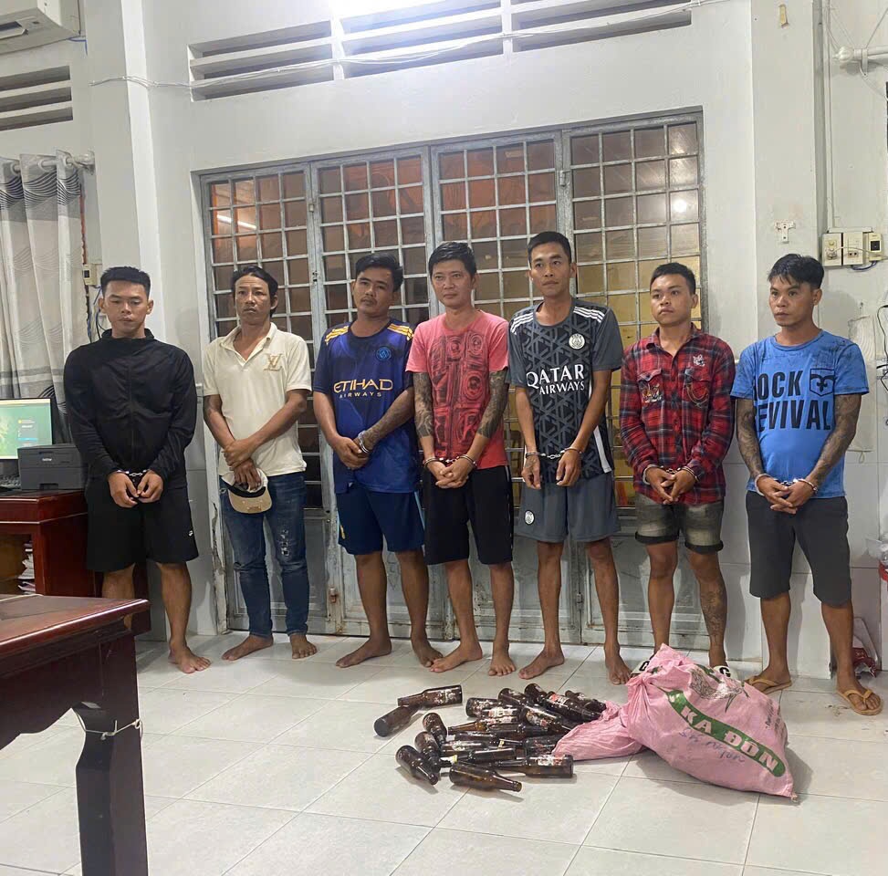Theo đó, các đối tượng bị bắt tạm giam gồm: Nguyễn Đức Tài (Đen), (SN 1995, cư trú ấp Chà Rào, xã Thạnh Bình, huyện Giồng Riềng); Văn Công Măn (SN 1991, cư trú khóm Vĩnh Quới, xã Vĩnh Thạnh Trung, huyện Châu Phú, tỉnh An Giang); Lâm Văn Đồ (SN 1990, cư trú ấp Mười Lăm, xã Đông Hưng B, huyện An Minh); Đinh Quang Hậu, (SN 1998, cư trú ấp Bãi Bổn xã Hàm Ninh, thành phố Phú Quốc); Trương Văn Hữu Lợi (SN 1987, cư trú ấp Trung Phú 1, xã Vĩnh Phú, huyện Thoại Sơn, An Giang); Nguyễn Thanh Nghĩa (SN 1990, cư trú ấp Dinh xã Mỏ Công, huyện Tân Biên, tỉnh Tây Ninh); Võ Văn Hào (Long) (SN 2003, cư trú Tổ 10, ấp Tấn Thạnh, xã Tấn Mỹ, huyện Chợ Mới, tỉnh An Giang).