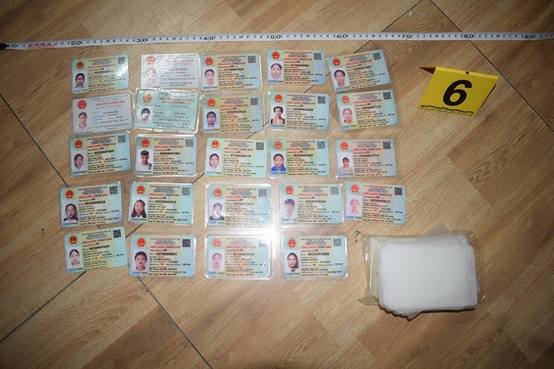 Tại Cơ quan điều tra, các đối tượng khai nhận làm giả Căn cước công dân cho người dự tuyển lao động chưa đủ tuổi (dưới 18 tuổi) để giới thiệu vào làm việc tại các xưởng, khu công nghiệp, khu chế xuất. Các đối tượng sẽ cắt từ lương của người lao động số tiền là 2000đ/1 giờ làm việc/1 lao động để thu lợi cho bản thân.