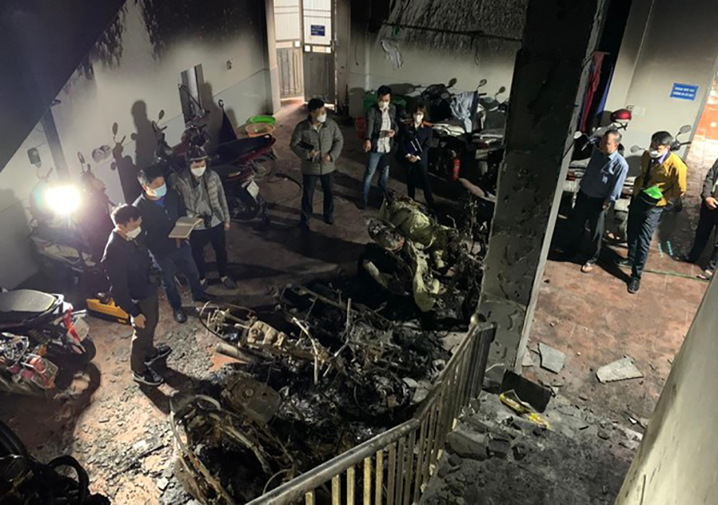 Khu vực cháy tại nơi để xe ở tầng 1 thuộc nhà 5 tầng, 1 tum, kết cấu bê tông, cốt thép, diện tích mặt sàn khoảng 170m2. Về thiệt hại ban đầu, đã có 1 người chết trong vụ cháy.