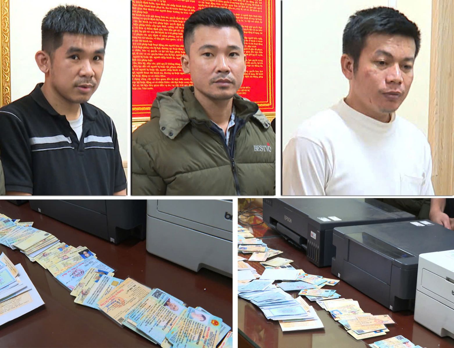Trước đó, Phòng Cảnh sát hình sự Công an tỉnh phát hiện một nhóm đối tượng sinh sống tại các tỉnh, thành phía Nam có nghi vấn hoạt động sản xuất, làm giả con dấu, tài liệu của cơ quan, tổ chức, như: Căn cước công dân, giấy phép lái xe, giấy chứng nhận đăng ký xe, tem và giấy chứng nhận đăng kiểm, giấy chứng nhận quyền sử dụng đất, các loại văn bằng, chứng chỉ khác với số lượng lớn, phạm vi cung cấp trên toàn quốc, trong đó có nhiều “khách hàng” tại Thanh Hóa.