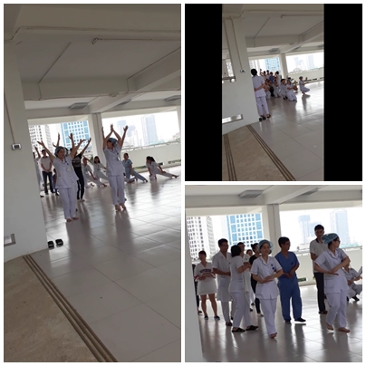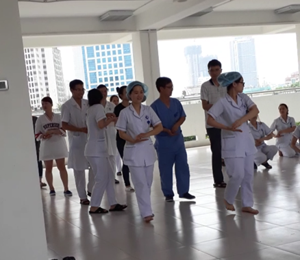 Theo ghi nhận của PV vào thời điểm trên có hàng chục nhân viên y tế của bệnh viện vẫn mặc nguyên y phục nhảy múa, cười đùa tập dân vũ với âm thanh của loa đài ầm ĩ. Theo đó, một nhân viên y tế cho biết: "Cán bộ nhân viên bệnh viện tập để chuẩn bị cho một cuộc thi văn nghệ do bệnh viện tổ chức".