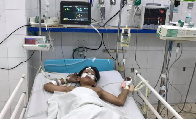 Theo người nhà bé T., trong lúc chơi đùa, bạn của bé T. đã dùng máy thổi hơi làm sạch gỗ cho vào hậu môn của bé này để thổi. Áp lực của hơi đã gây vỡ ruột già khiến bé phải nhập viện cấp cứu.