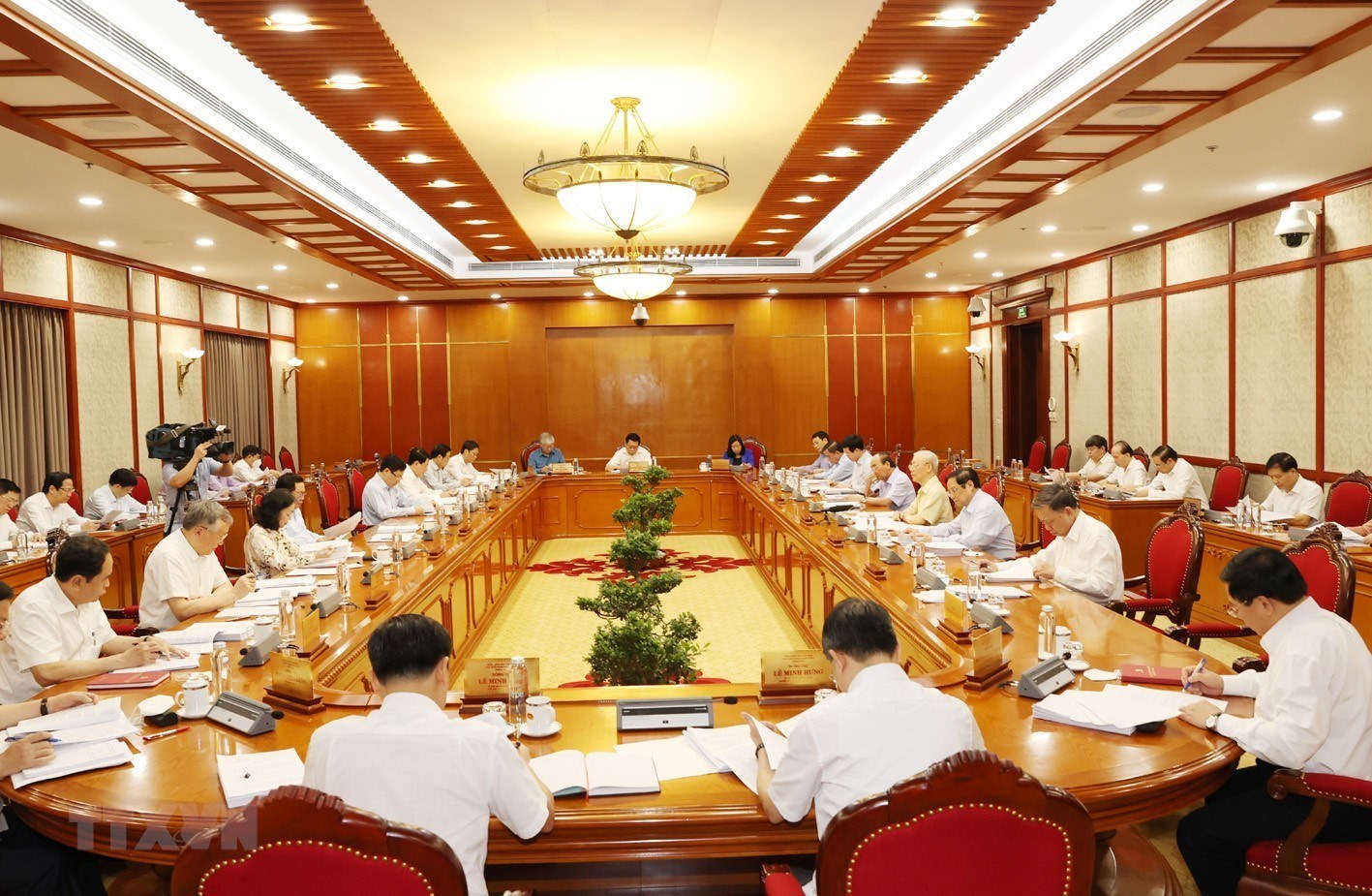 Dự họp có các đồng chí Ủy viên Bộ Chính trị: Chủ tịch nước Nguyễn Xuân Phúc; Thủ tướng Chính phủ Phạm Minh Chính; Chủ tịch Quốc hội Vương Đình Huệ; Thường trực Ban Bí thư Võ Văn Thưởng cùng các đồng chí Ủy viên Bộ Chính trị, Bí thư Trung ương Đảng; đại diện các ban, bộ, ngành Trung ương.