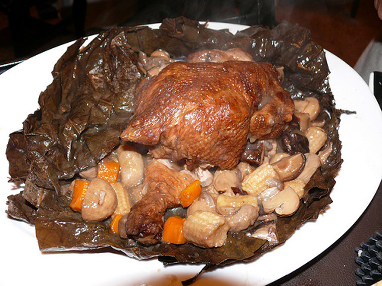 Gà ăn mày là món ăn không chỉ nổi tiếng ở Thường Châu mà còn là đặc sản của cả Trung Quốc. Món gà này do một gã ăn mày sáng tạo ra nên có tên là gà ăn mày từ đó. Gà được chế biến theo kiểu bọc lá sen, sau đó bọc thêm lớp bùn dày bên ngoài rồi đốt lửa nướng.
