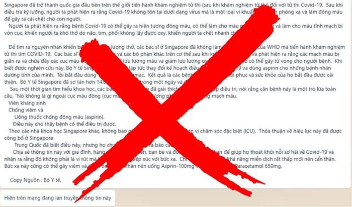 Cụ thể, nội dung tin nhắn này nói rằng, đây là nghiên cứu của các nhà khoa học Singapore sau khi tiến hành khám nghiệm tử thi của các bệnh nhân tử vong do COVID-19. Không những thế, tin nhắn còn khẳng định có thể điều trị COVID-19 bằng thuốc kháng sinh, kháng viêm và chống đông máu...