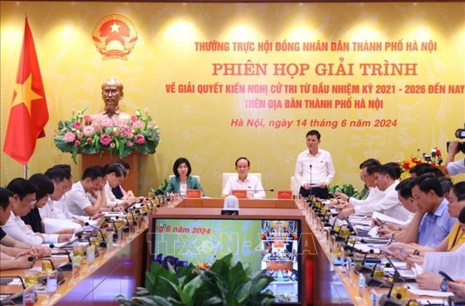 Tại phiên họp, Chủ tịch HĐND thành phố Hà Nội Nguyễn Ngọc Tuấn cho biết, hoạt động giải trình là hình thức giám sát thường xuyên của Thường trực HĐND thành phố Hà Nội và đã phát huy hiệu quả thiết thực, được cử tri và nhân dân rất quan tâm. Căn cứ chương trình công tác năm 2024, trên cơ sở đề xuất, kiến nghị của các Ban HĐND, Tổ đại biểu HĐND, Thường trực HĐND thành phố quyết định lựa chọn nội dung giải trình về kết quả giải quyết các kiến nghị của cử tri từ đầu nhiệm kỳ 2021 - 2026.