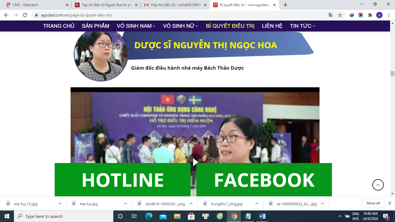 Theo tìm hiểu của PV trên ba trang mạng: agodad.com.vn, chuyenchuavosinh.com và Facebook Điều trị Vô sinh - Hiếm muộn, với các đầu số điện thoại tư vấn lần lượt là: 09678661**, 03737972**, 08982529** có dấu hiệu quảng cáo, tư vấn bán sảm phẩm TPBVSK Ago Dad, Ago Mom như một loại thuốc chữa vô sinh, hiếm muộn.