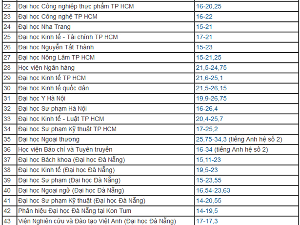 Điểm chuẩn là tổng điểm của ba môn thi THPT quốc gia theo tổ hợp xét tuyển, trong đó một số môn có thể nhân hệ số 2.