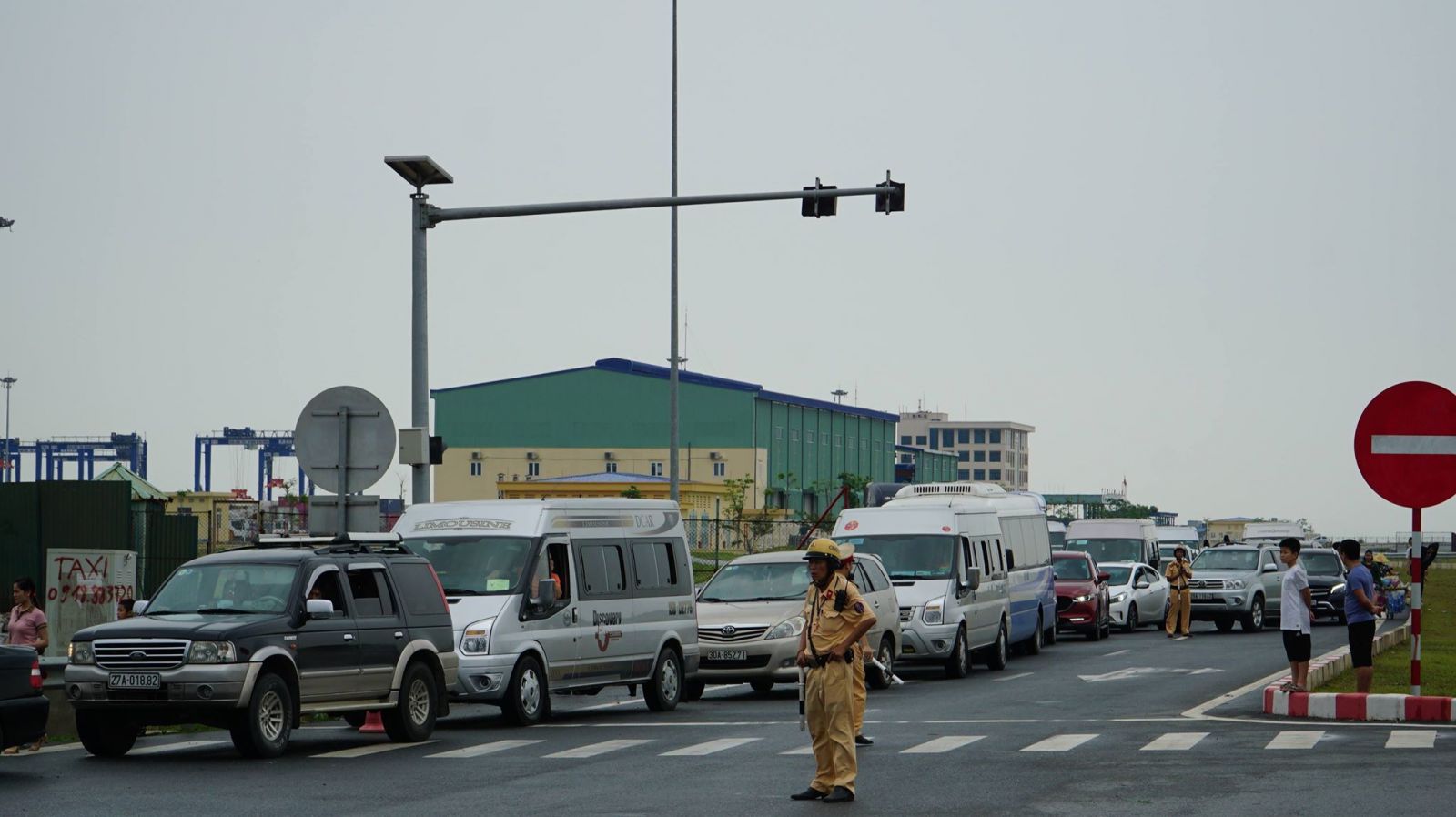 Gần 30 cán bộ, chiến sĩ Đội Cảnh sát giao thông số 4 (Công an Hải Phòng) phối hợp với Thanh tra giao thông (Sở Giao thông Vận tải) điều tiết từ sáng cho đến 18h chiều cùng ngày mới được nghỉ, khi các phương tiện đã xuống phà.
