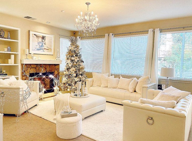 Trong căn phòng này, cô sử dụng tông màu trắng làm chủ đạo. Từ ghế, đồ vật trang trí, cây thông Noel đều được sử dụng tông màu trắng khiến cho cô cảm giác như lạc vào một khu vườn đầy tuyết rất đẹp. Đặc biệt là khi ngồi bên lò sưởi nữa thì rất ấm áp và hạnh phúc.