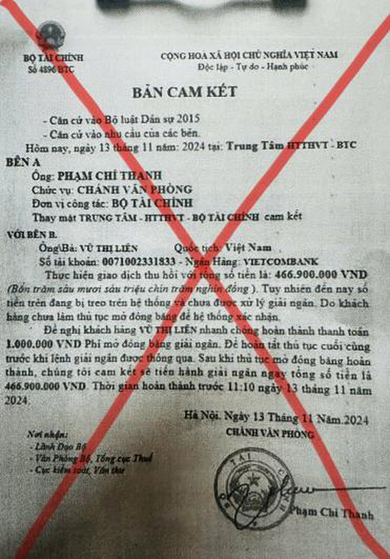 Tiếp ngay sau đó, ngày 15/4/2025, Bộ Tài chính một lần nữa đã phát đi cảnh báo tới người dân, doanh nghiệp về việc giả mạo các văn bản lợi dụng danh nghĩa của Bộ Tài chính để lừa đảo "thu hồi tiền" cho các nạn nhân bị lừa đảo qua mạng.