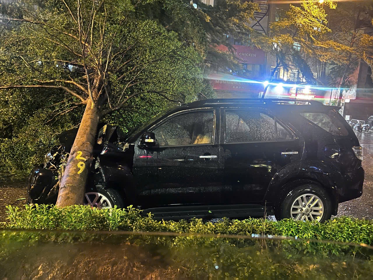 Theo Công an TP.Hà Nội, khoảng 22h tối ngày 7/9, Tổ công tác gồm Đội CSGT ĐB số 3 - Phòng CSGT do Đại uý Nguyễn Văn Hưng làm Tổ trưởng khi đang thu gom cây đổ trên tuyến Đường Láng phát hiện một cây to ven đường, đường kính 30cm bật gốc, đổ vào xe ô tô 7 chỗ mang biển số 30F-015.xx đang lưu thông ngang số nhà 1194 Đường Láng.