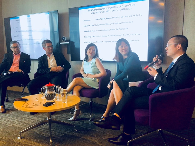 Hội thảo Công trình Xanh nằm trong khuôn khổ của Hội nghị Tài chính Xanh diễn ra từ ngày 04-08/6. Ông Trịnh Tùng Bách vinh dự được mời tham gia Hội thảo với vai trò là một thành viên trong nhóm thảo luận trên sân khấu cùng với ba đại diện đến từ các tập đoàn lớn khác là Capital Land, City Development Limited và nhà đầu tư Diener Syz.