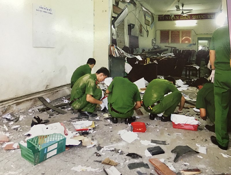 Chiều 5/7, Công an TP HCM xác định Vũ Hoàng Nam (22 tuổi) là kẻ trực tiếp gây nổ tại Công an phường 12 quận Tân Bình. Anh ta cùng Nguyễn Khanh (54 tuổi), Nguyễn Tấn Thành (28 tuổi, con trai Khanh) và Dương Bá Giang (47 tuổi) bị khởi tố về hành vi Khủng bố nhằm lật đổ chính quyền nhân dân.