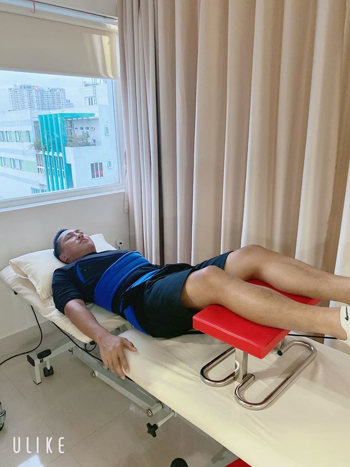 Nam ca sĩ phải ở viện khoảng 2 tuần, chữa vật lý trị liệu. Cụ thể, bác sĩ sẽ kéo lưng cho dãn cơ, chỉnh lại đĩa đệm bị lệch và tập những bài tập giúp cơ ổn định, hồi phục.