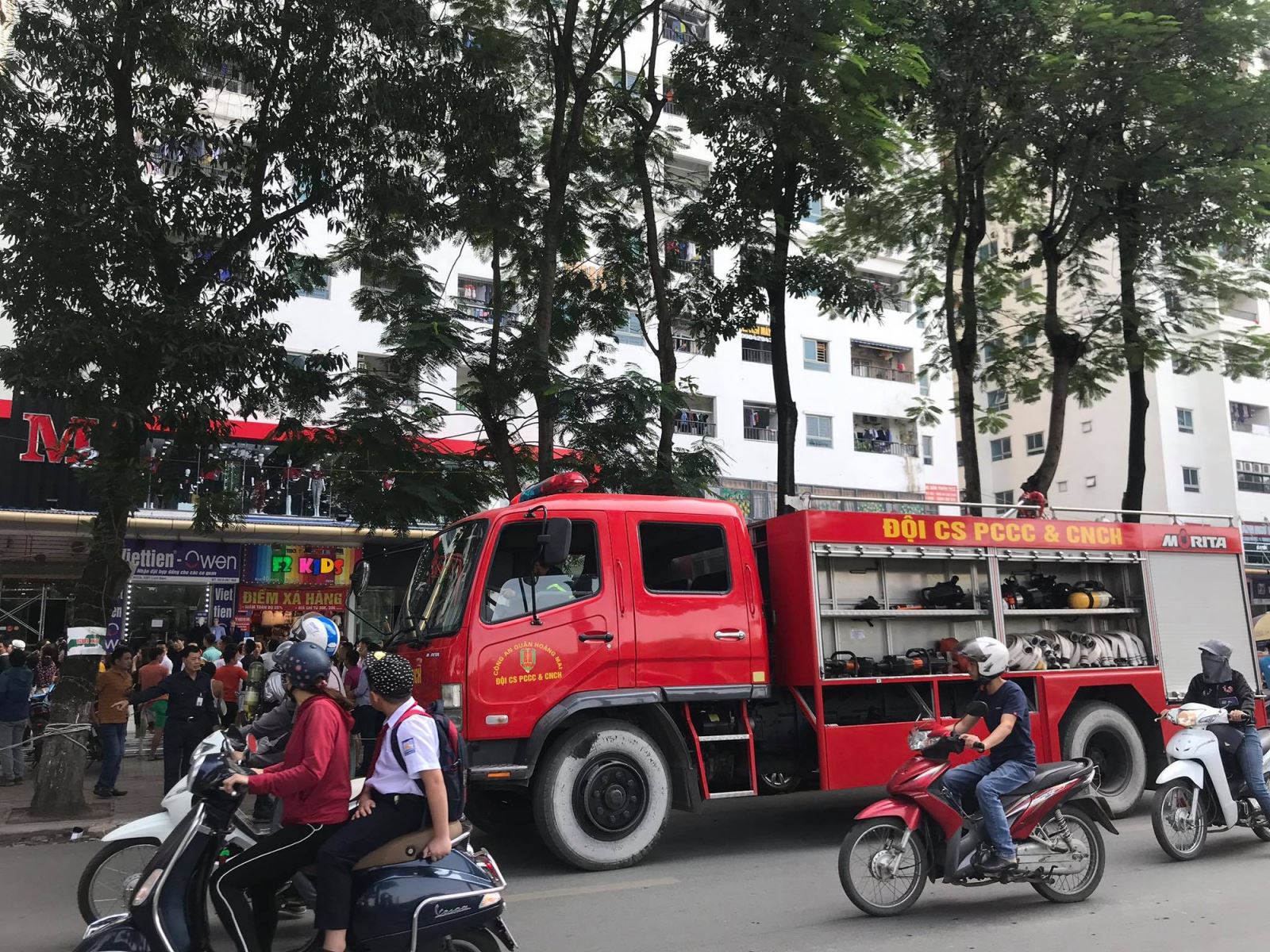 Thấy ngọn lửa có dấu hiệu bùng phát dữ dội và lan nhanh nên nhiều cư dân sống trong chung cư đã nhanh chóng sơ tán ra ngoài. Theo quan sát, ngọn lửa được cho là bùng phát bên ngoài ban công và nhanh chóng bén vào quần áo, vỏ chăn ga treo trên dây phơi.
