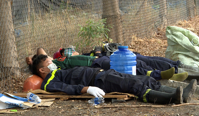 Suốt ba ngày, lực lượng chữa cháy ăn bánh mì, cơm hộp, nước suối và ngủ ở lề đường, tựa gốc cây, bãi cỏ, ghế bố khi được thay ca. "Chúng tôi gần như kiệt sức, nhưng không ai nản chí, chỉ mong muốn ngọn lửa được dập tắt, hạn chế thiệt hại cho doanh nghiệp và ô nhiễm môi trường", một lính cứu hỏa nói.