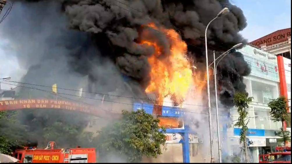 Theo thông tin ban đầu, vào khoảng 6h30 sáng nay (17/8) tại siêu thị 90 K, đường Hùng Vương, phường Hoàng Văn Thụ, TP Bắc Giang, tỉnh Bắc Giang cạnh cầu vượt đường cao tốc Hà Nội-Bắc Giang, xảy ra cháy lớn.