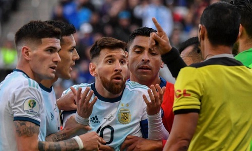 Messi đã gay gắt phản ứng tổ trọng tài trận đấu này, LĐBĐ Argentina cũng có văn bản gửi đến CONMEBOL quanh sự cố này nhưng mọi việc gần như bị "chìm xuồng". Có lẽ vì quá mạnh miệng ở lĩnh vực "cấm kỵ" kể trên, Messi trong trận tranh hạng 3 đã phải nhận thẻ đỏ trực tiếp dù không phản ứng gì trong tình huống bị trung vệ Gary Medel bên phía Chile gây hấn dữ dội. Bức xúc với quyết định của trọng tài, Messi sau trận đấu đã từ chối lên nhận huy chương đồng và tiếp tục chỉ trích trọng tài và Ban tổ chức giải.