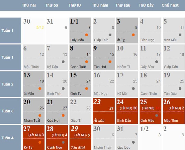 Như vậy, tổng số ngày nghỉ trong dịp tết Âm lịch năm 2020 sẽ là 7 ngày, từ ngày 23/1/2020 đến hết thứ tư, ngày 29/1/2020 (tức là từ ngày 29 tháng Chạp năm Kỷ Hợi đến hết mùng 5 tháng Giêng năm Canh Tý).