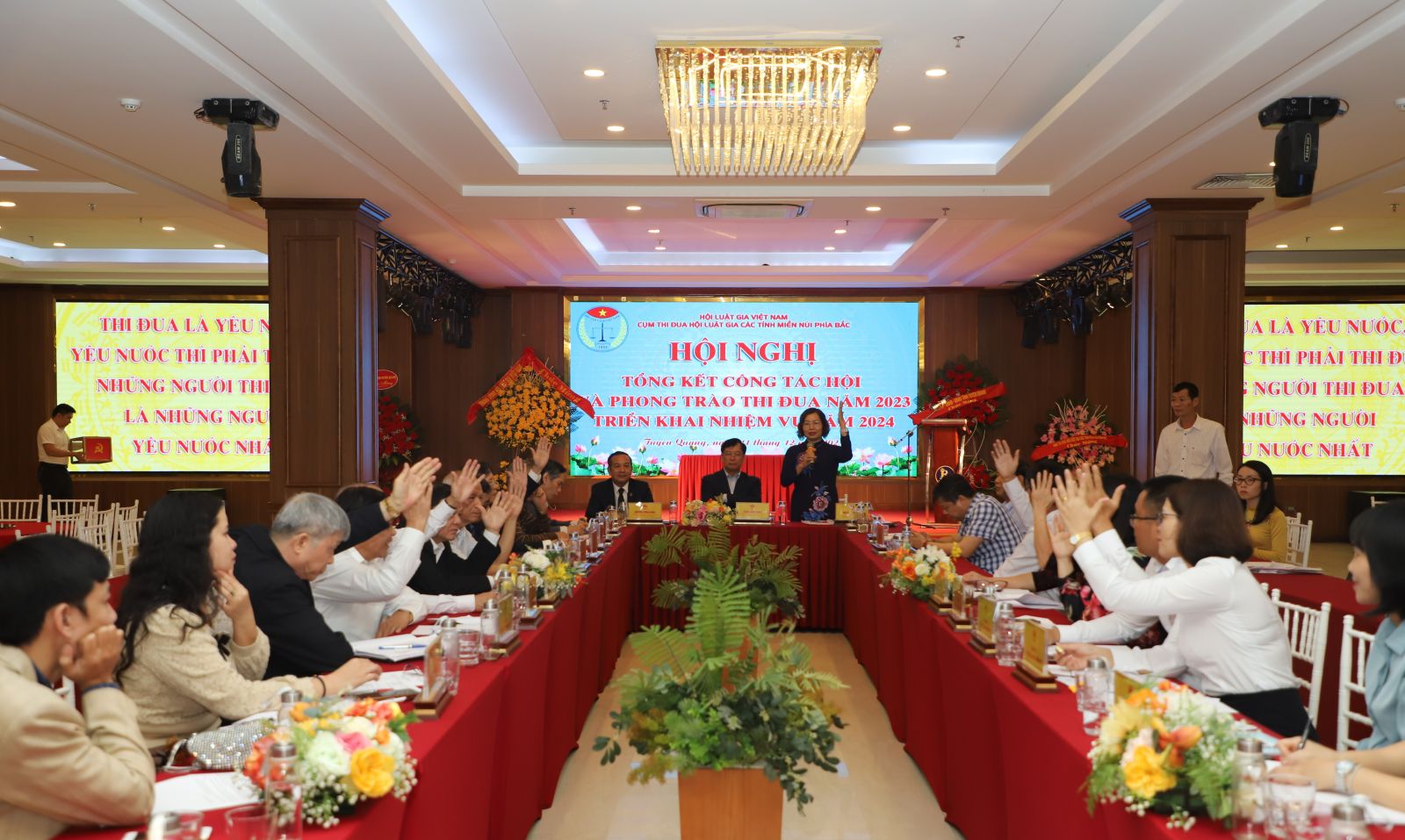 Cũng nhân dịp này, Cụm thi đua Hội Luật gia các tỉnh Miền núi phía Bắc đã biểu quyết đề nghị Trung ương Hội Luật gia Việt Nam tặng cờ thi đua cho 2 tập thể (Hội Luật gia tỉnh Tuyên Quang và Lào Cai), đề nghị tặng bằng khen của Chủ tịch Hội Luật gia Việt Nam cho các tập thể và cá nhân có thành tích xuất sắc trong công tác hội. Đồng thời, thống nhất phát động phong trào thi đua và ký kết bản Giao ước thi đua năm 2024 với chủ đề: “Đoàn kết, trách nhiệm, chủ động, sáng tạo, phấn đấu hoàn thành tốt mọi nhiệm vụ được giao".