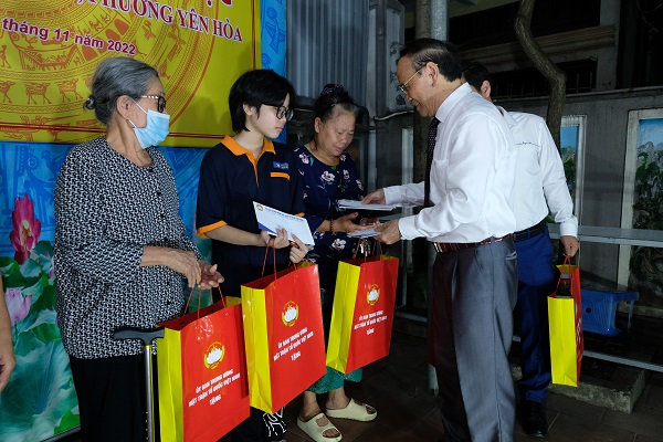 Đồng thời, ông Nguyễn Văn Quyền cũng thay mặt Đoàn Chủ tịch Ủy ban Trung ương Mặt trận Tổ quốc Việt Nam và Hội Luật gia Việt Nam tiến hành trao tặng phần quà cho liên khu dân cư số 4 và số 6, phường Yên Hoà. Nhân dịp này, tổ dân phố số 4 và tổ dân phố số 6 cũng trao quà và khen thưởng cho 21 hộ gia đình văn hoá tiêu biểu của 2 tổ.