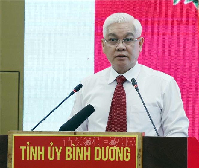 Đồng chí Nguyễn Văn Lợi, Uỷ viên Trung ương Đảng, Bí thư Tỉnh uỷ Bình Dương phát biểu. Ảnh: Thống Nhất/TTXVN