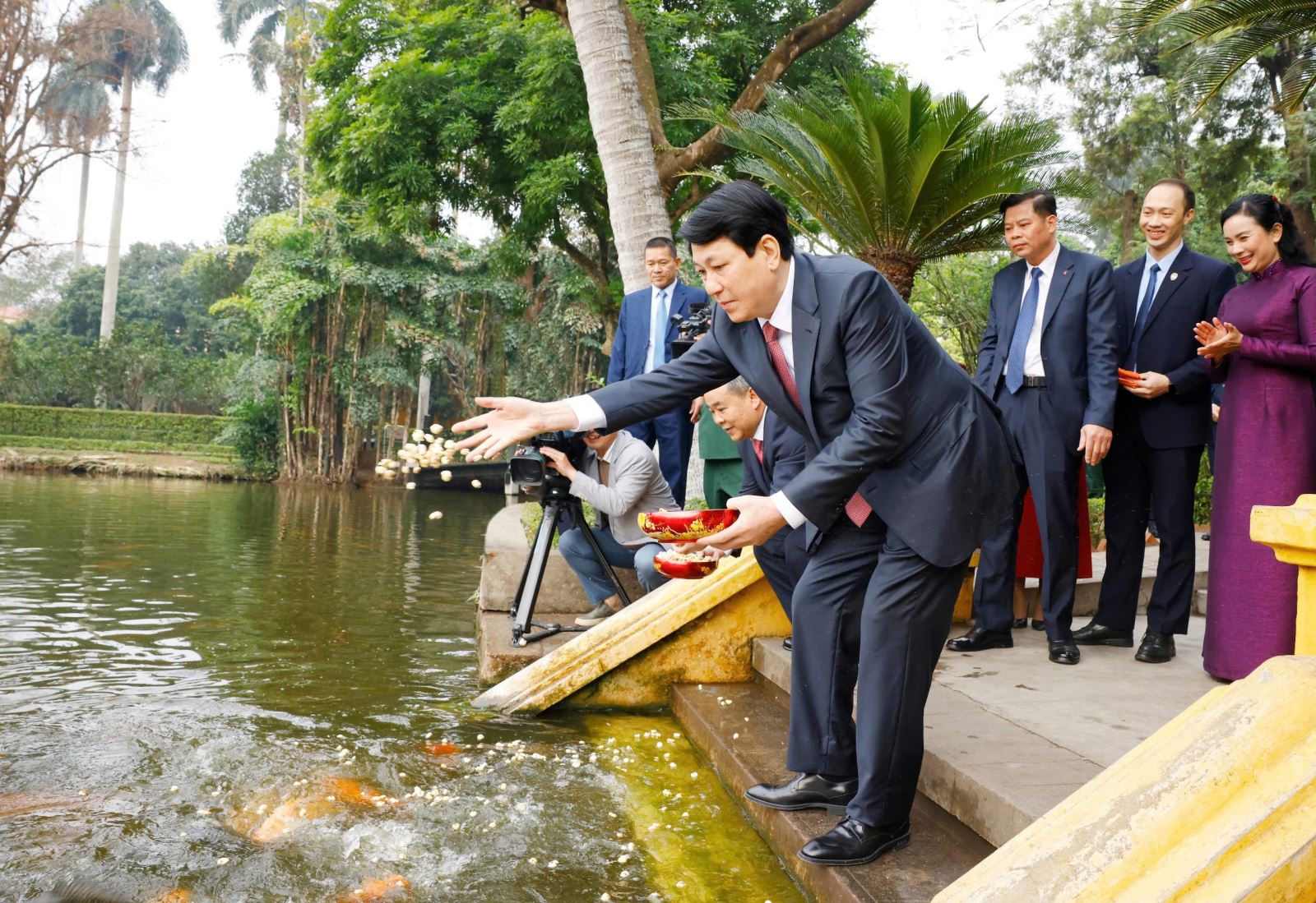 Tiếp đó, Chủ tịch nước Lương Cường thăm ao cá Bác Hồ trong khuôn viên Khu di tích Chủ tịch Hồ Chí Minh. Sinh thời, hàng ngày, sau giờ làm việc buổi chiều là lúc Bác ra bờ ao vỗ tay gọi và thả thức ăn cho đàn cá ăn. Bao năm Người đi xa, nhưng những ký ức về lối sống giản dị của người bên vườn cây, ao cá; đạo đức, tình thương của Người vẫn lan tỏa khắp mọi miền đất nước.